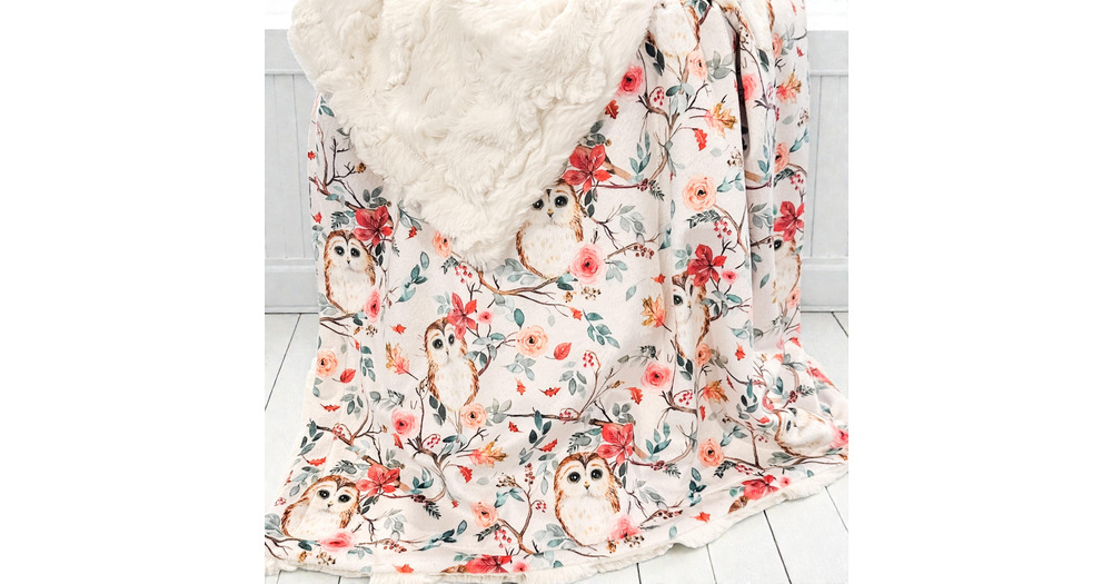 Lovey Blanket with Owls and Flowers | Minky Baby Blanket | Unique Gift for Baby Girl |  Nursery Deco