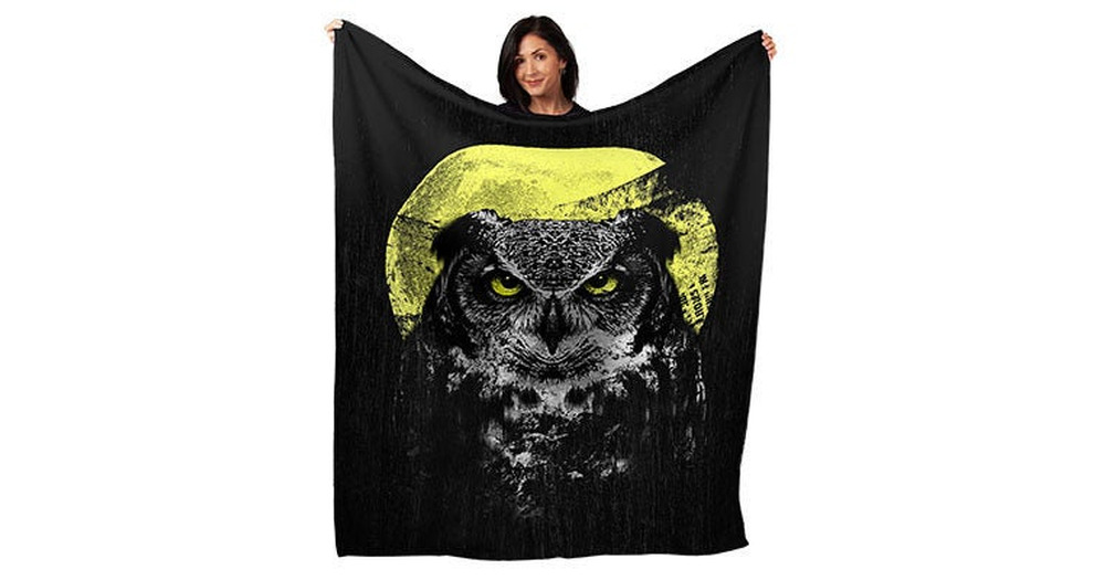 Night Owl Soft Plush 50" x 60" Minky Blanket, Wildlife Throw, Spooky, Moon, Birds, Eyes, H
