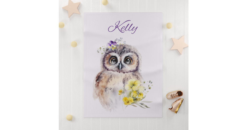 Floral Owl Baby Blanket | Custom Name Kids Room Decor
