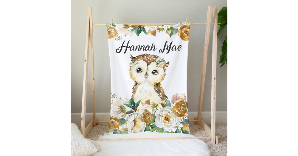 Owl Baby Girl Blanket, Personalized Girl Blanket, Woodland Blanket, Baby Shower Gift, Floral Baby Gi