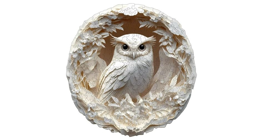Jollitot Wooden Puzzles Adults, 3D Paper Carved Owl Puzzle 200 Pieces, Unique Animal Shaped Wood Cha
