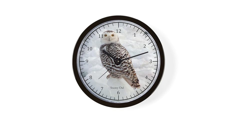 CafePress Snowy Owl 10" Wall Clock for Livingroom, Kitchen, or Office