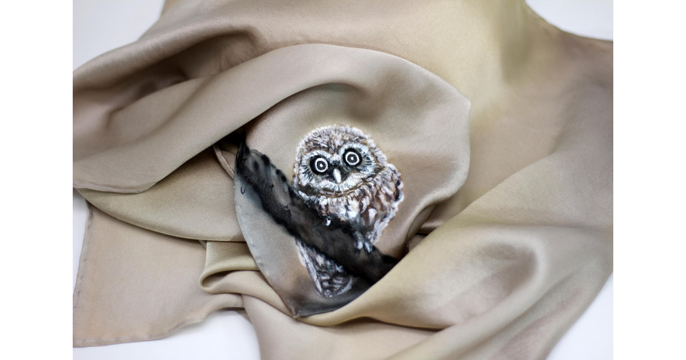 Hand Painted Owl Silk Scarf – Crepe Satin 12.5 – 52×52 cm