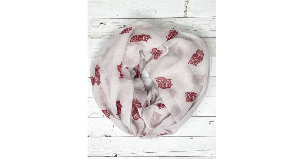White with red owl scarf