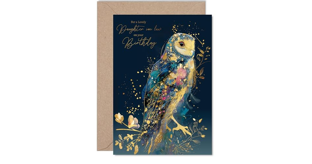Gold Daughter in Law Birthday Card - Luxury Wisdom Owl - Happy Birthday Card for Daughter in Law fro