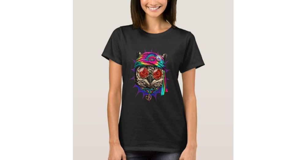 Hippie Owl Bird Tie Dye Peace Sign Psychedelic Bir T-Shirt