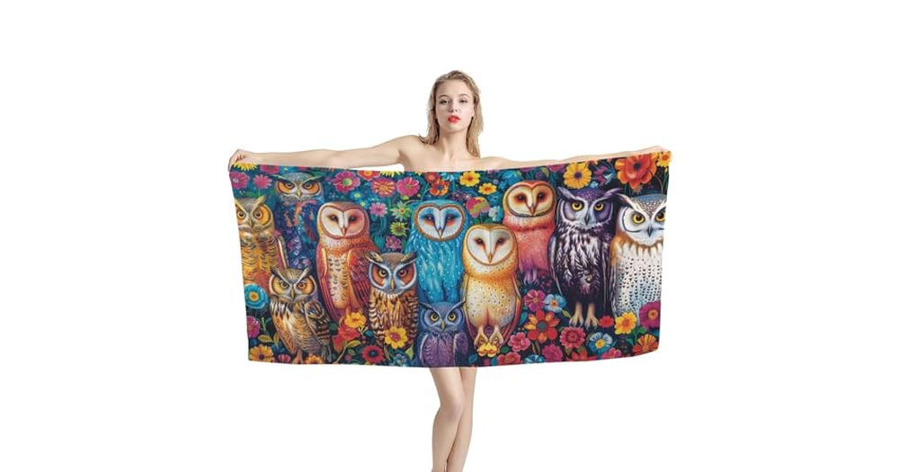 Glomenade Trippy Owl Floral Beach Towels Comfortable Soft Microfiber Bath Towels Lightweight Compact
