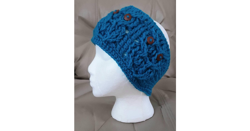 Crocheted Owl Headband, Sky Blue Winter Ear Warmer