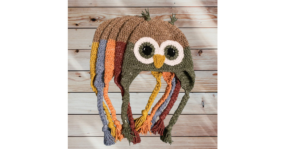 Crochet Owl Hat - Hemp/Acrylic - Choose Color and Size