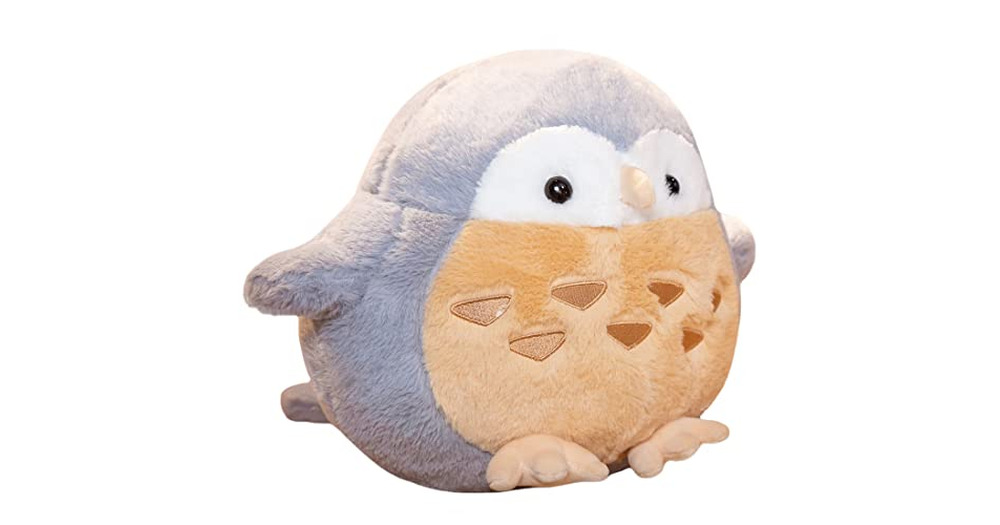 ELAINREN Ultra-Soft Gray Owl Stuffed Pillow Cuddly Round Owl Plush Toy Fluffy Bird Owl Plushie Doll
