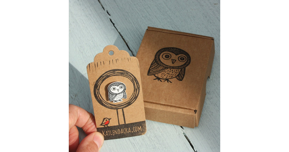 owl pin - owl badge - jewelry - owl jewellery - linocut - owl pin - Kat Lendacka - animal earrings -