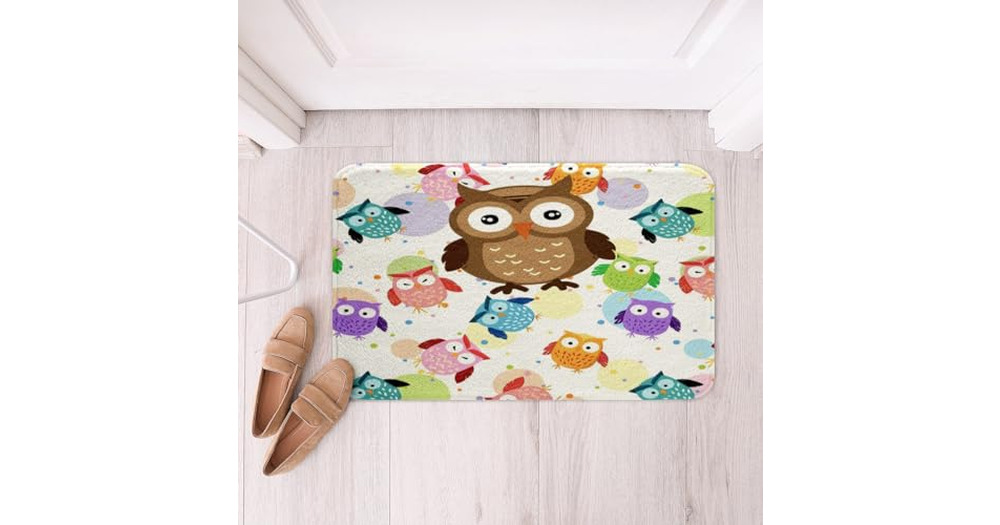 Kids Cute Owl Non Slip Bathroom Rug Mat Cartoon Owls Bath Mat for Boys Girls Teens Colorful Bird Dec