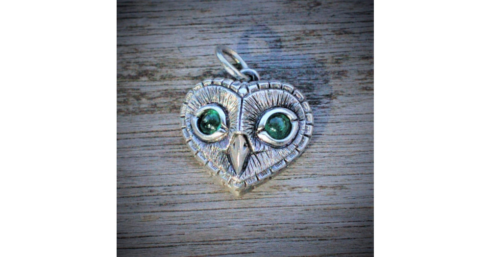 Emerald Owl Necklace: Sterling Silver Heart Pendant, May Birthstone