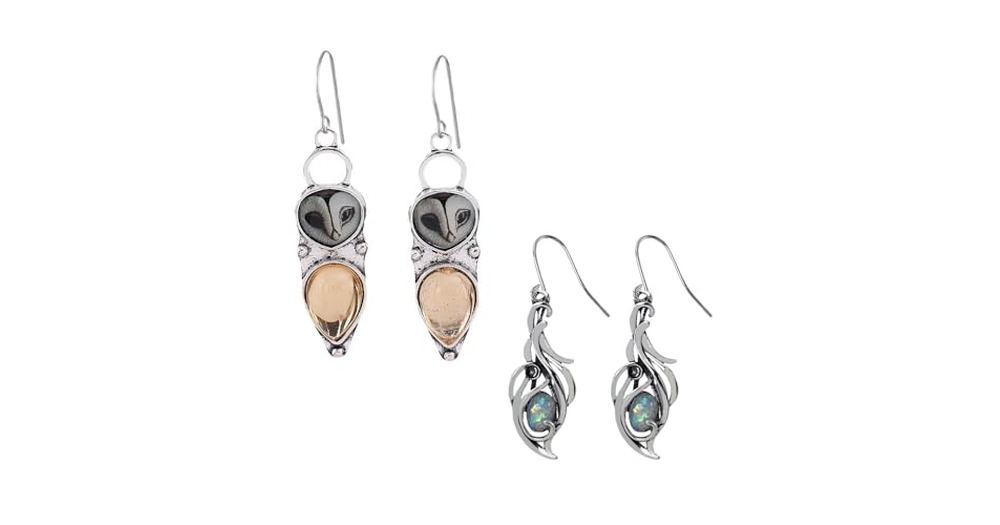 NOIAFZY 2Pairs Vintage-Inspired Bohemian Owl-Shaped Dangle Earrings and Unique Shimmering Bohemian F