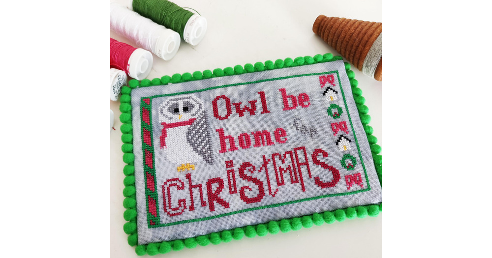 Owl Be Home for Christmas Cross Stitch Chart - PDF digital cross stitch pattern, original design. Pu