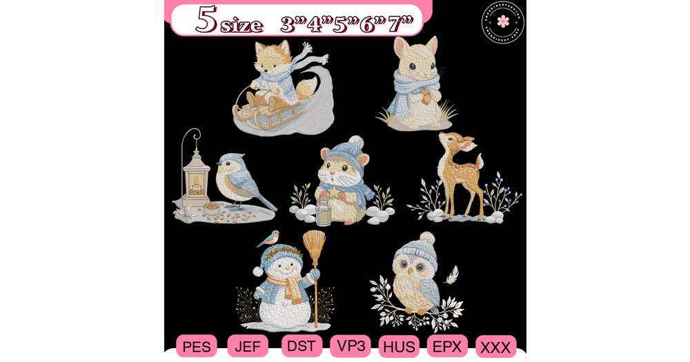 Christmas Snowman Bird Reindeer Owl Mouse Fox Embroidery Bundle, Merry Christmas Shirt Idea, Winter