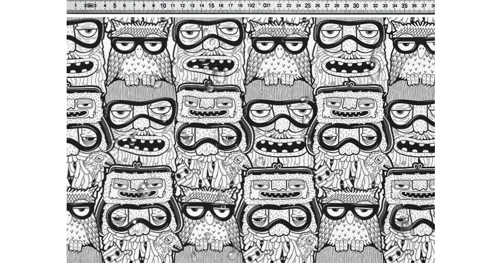 Waterproof fabric Cordura Funny Faces Owls, PN-EN ISO, 600D weave, 200G/m2, Width 150cm /60"