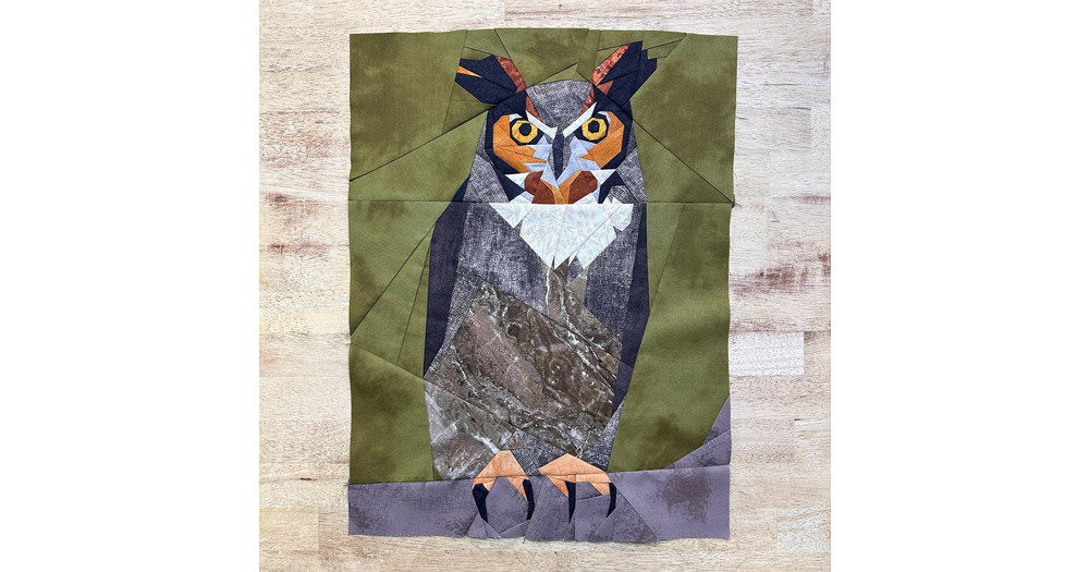 Great Horned Owl FPP--Woodland and Riverside Animals Series--Paper Piecing Quilt Block Pattern