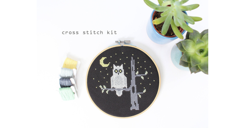 Night Owl - Modern Cross Stitch Kit - Easy DIY Cross Stitch Kit