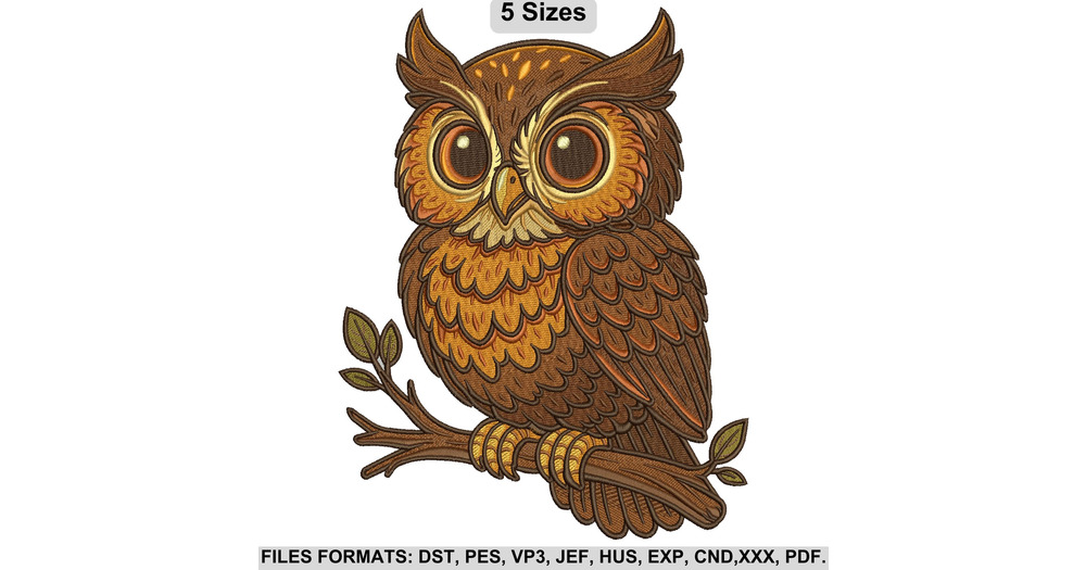 Owl Embroidery Design, Woodland Animal Embroidery Download, Machine Embroidery Pattern, 5 Sizes, Ins