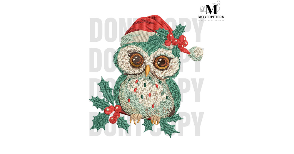 Christmas Owl Embroidery Designs, Cute Santa Hat Owl Embroidery Design, Holiday Holly Berry Owl Embr