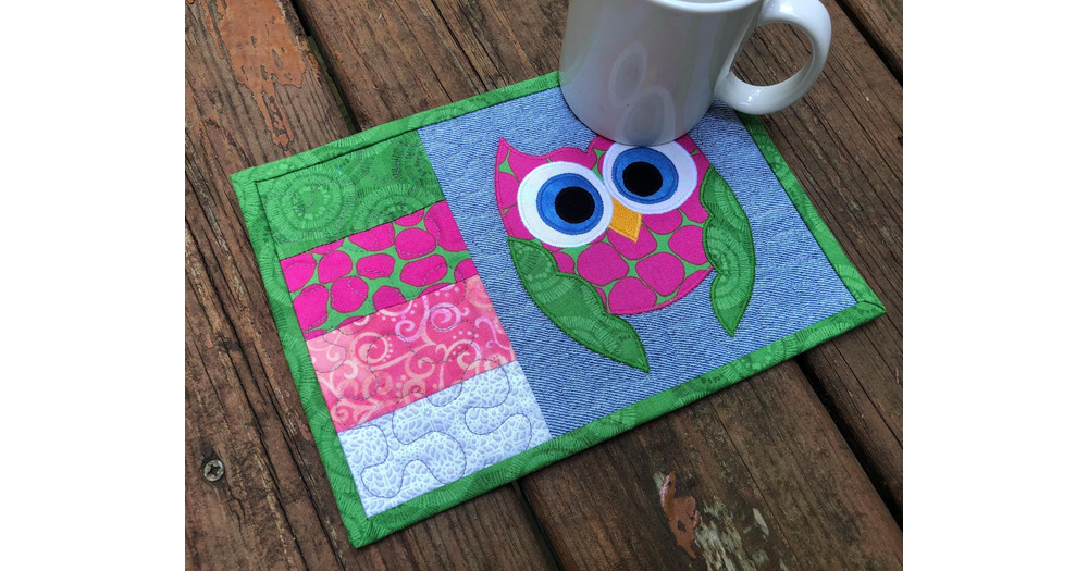 Paper Pattern for Owl Quilted Mug Rug Snack Mat