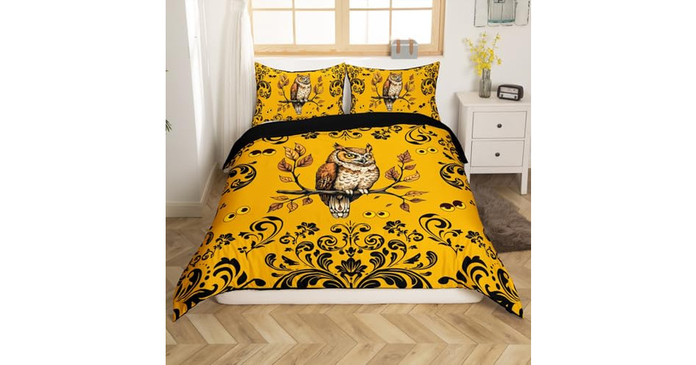 Erosebridal Halloween Owl Comforter Cover Full Boho Damask Gothic Bedding Set Boho Vintage Baroque F