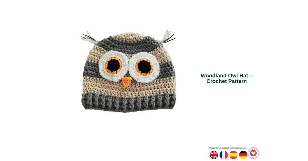 Woodland Owl Hat Crochet Pattern for Toddlers, Cute Animal Hat, Easy Striped Owl Beanie, Crochet Pat