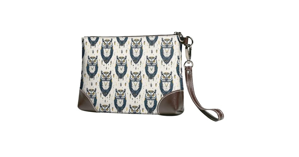 Small Clutch Purses for Women - Vintage Tribal Style Owl Print Portable Leather Wristlet Wallets wit