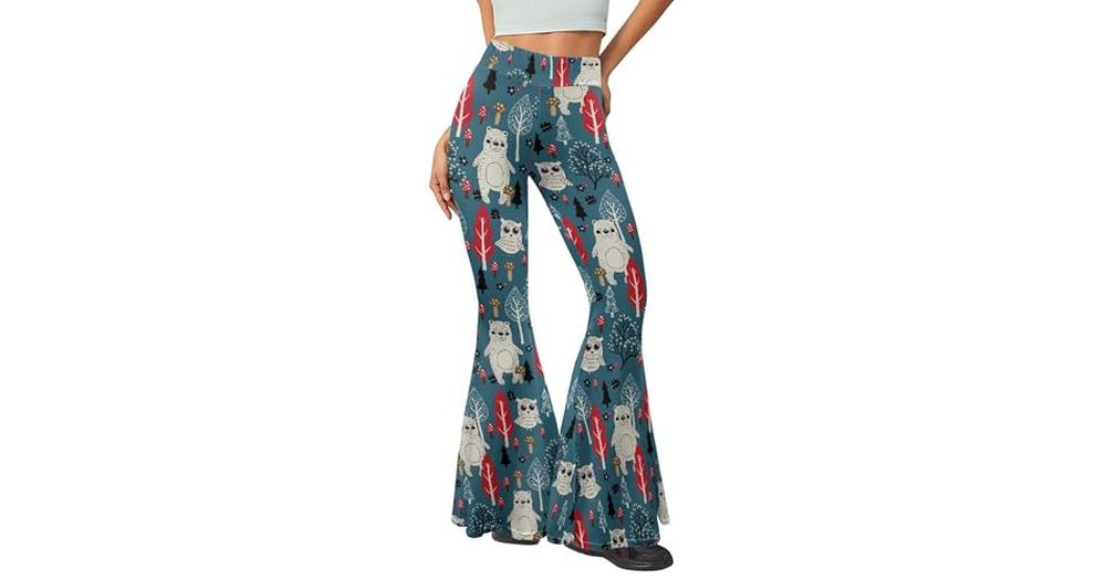 Pinupub Blue Bear Owl Leggings for Women - Soft Stretchy Casual High Waisted Flare Bootcut Leggings