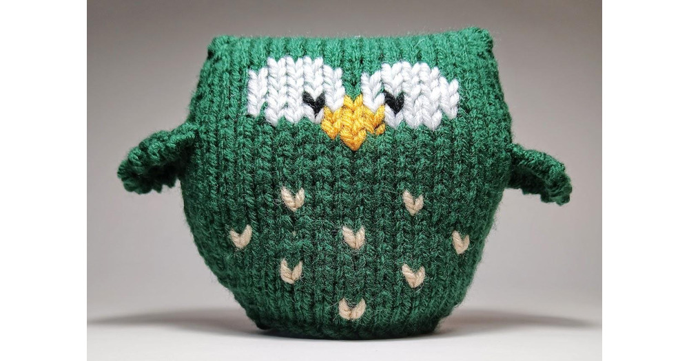 Stuffed Owl Toy Hand-Knit in Green, Baby Gift, Soft Toy Animal, Baby Rattle