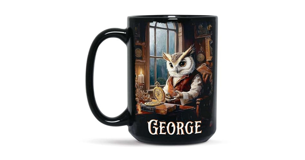 Personalized Name Owl Coffee Mug, Vintage Style Cup, Customized Owl Watchmaker Mug, Gift For Father
