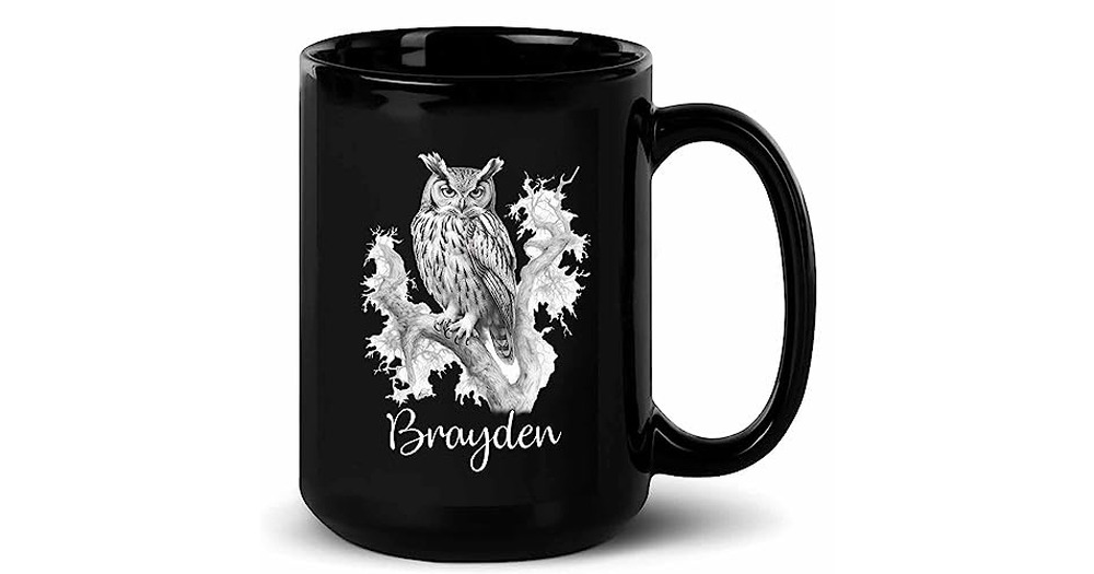 Personalized Owl Black Coffee Mug Gift For Son Daughter Men Women, Customized Name Drawings Pencil O