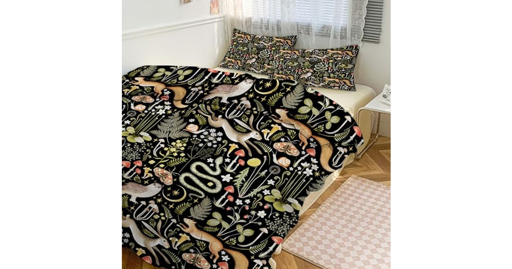 FBMLBRB Rustic Forest Cabin Duvet Cover Set 3 Pcs Queen Size,1 Lodge Woodland Wild Animals Owl Rabbi