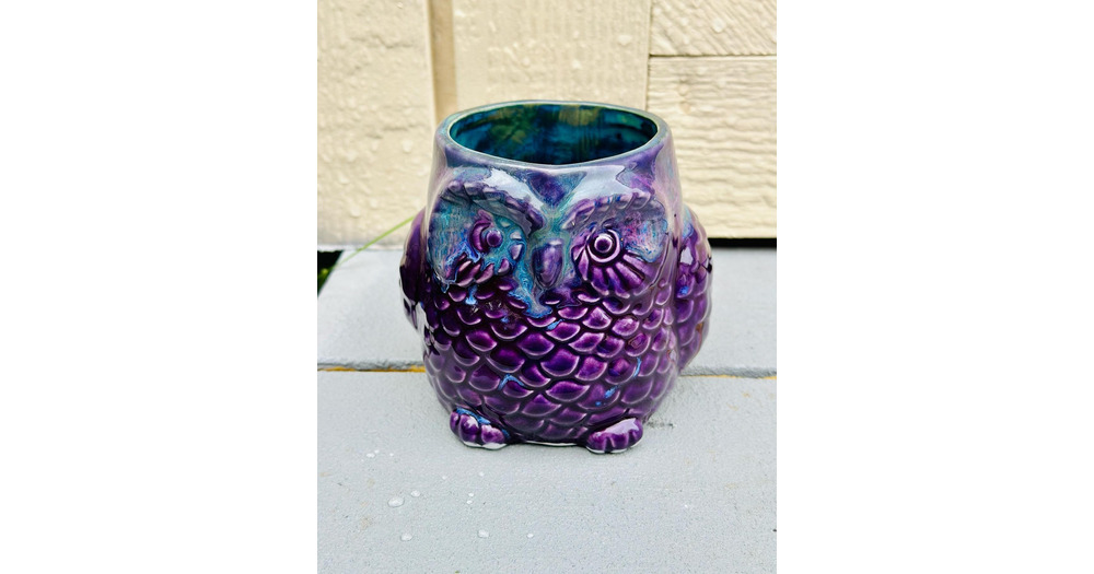 Purple Owl Mug: Hand-Glazed Ceramic Pottery, 24 Oz Jumbo Mug