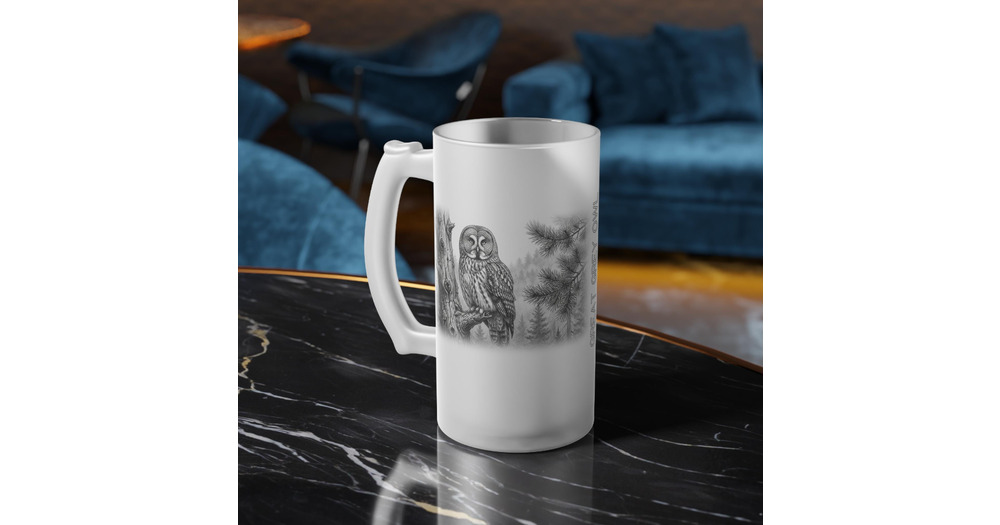 Great Grey Owl Mug, Frosted, Personalized Animal Enthusiast Beer Stein