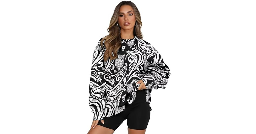 Irisjudy Tribal Art Owls Womens Crewnecks Oversized Sweatshirts Polynesian Hawaiian Tribal Sweatshir
