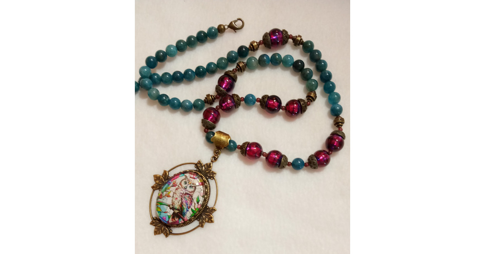 Colorful Woodland Eagle Owl Apatite Long Necklace