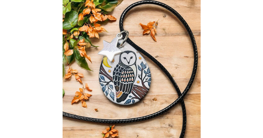 Handmade Ceramic Owl Necklace: Sterling Silver Star Charm, Wildlife Pendant