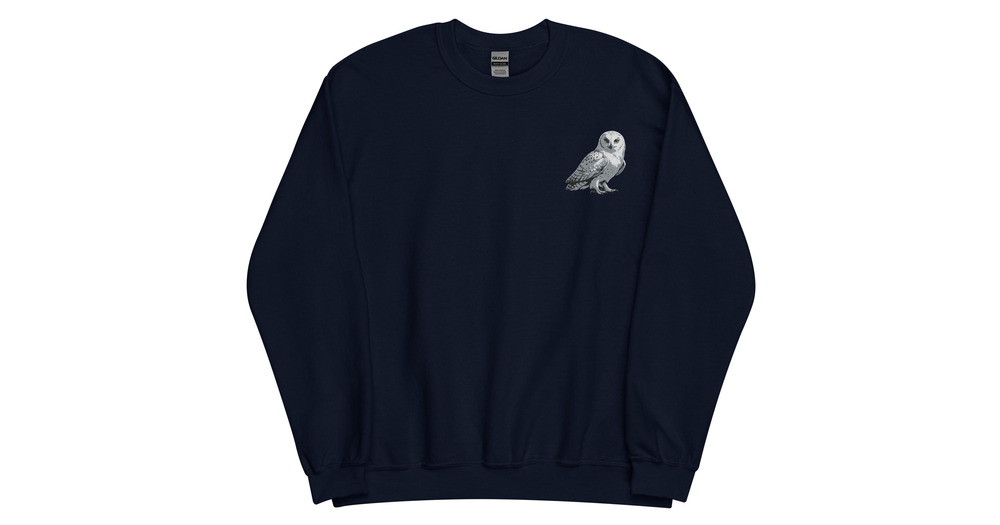 Snowy Owl Sweatshirt, EMBROIDERED Long Sleeve Crewneck Sweater, Owl Gifts, Bird Lover Gift, Bird Wat