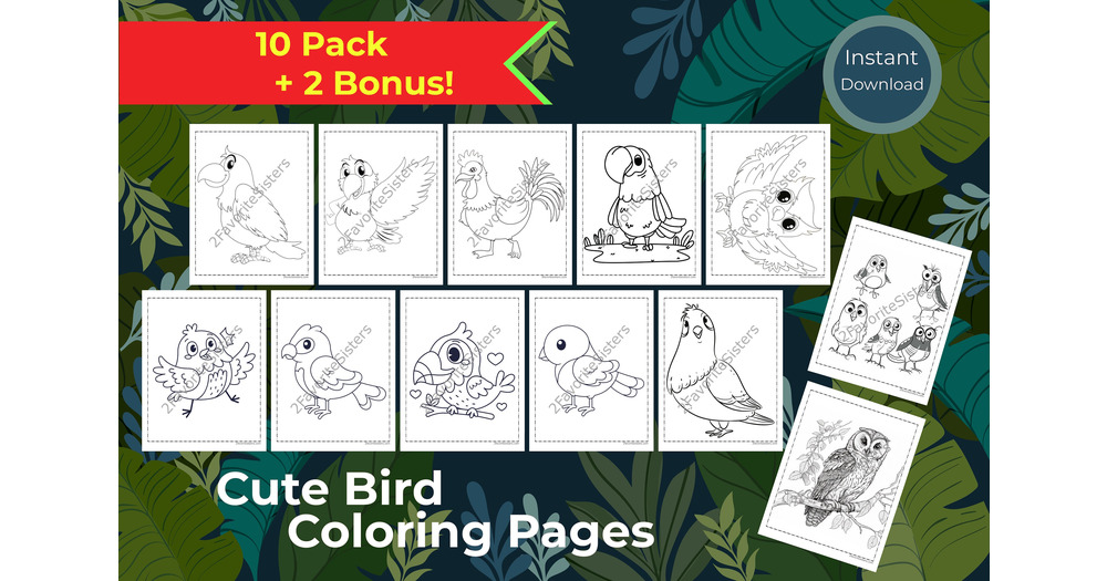 Bird Coloring Sheets kids Bundle Adult Owl digital download printable Parrot Toucan Owl Rooster pres