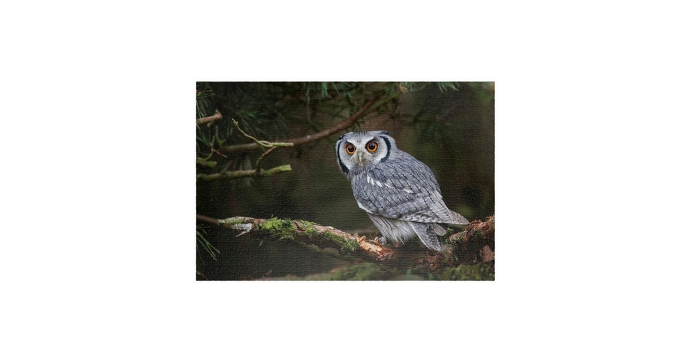 A White-Faced Scops Owl In Tree With Large Orange Eyes Puzzle (110, 252, 500, 1014-piece)