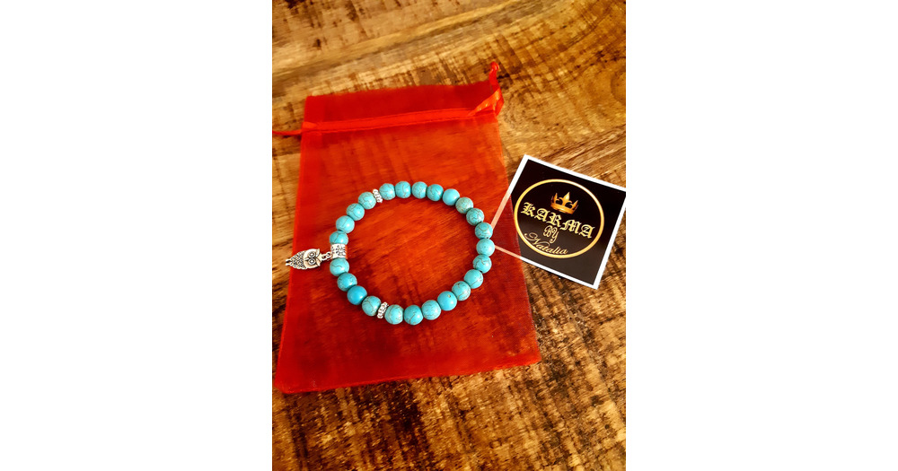 Turquoise Beaded Bracelet with Owl Charm: Handmade Stretch Jewelry
