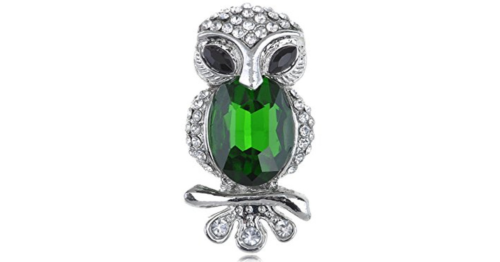 Alilang Womens Silvery Tone Emerald Green Colored Gemstone Cat Eyed Owl Bird Brooch Pin