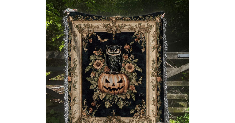 Owl Fall Woven Blanket - Autumn Home Decor, Nature Lover Gift, Halloween Decoration, Thanksgiving Ac