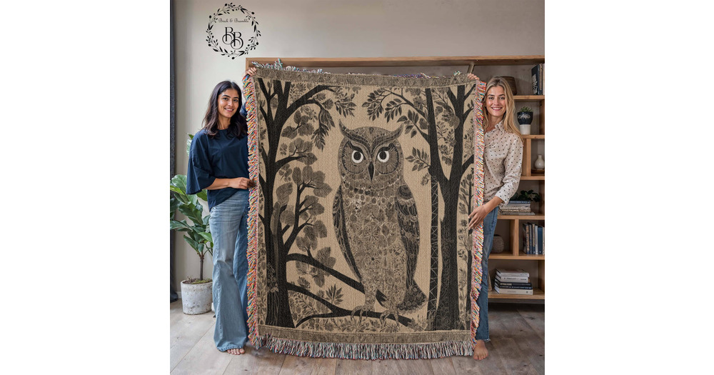 Gazing Owl Heirloom Woven Blanket | Blanket for Owl Lovers | Owl Gifts | Gifts for Nature Lovers | B