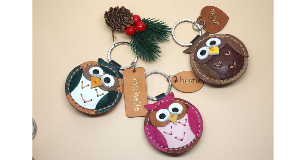 Personalized Leather Owl Keychain: Custom Bag Charm, Animal Keyring
