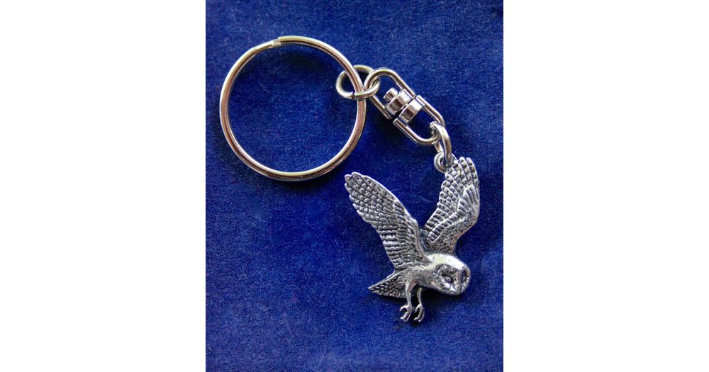 Barn Owl Keyring | Owl Present Idea | Silver Pewter and Stainless Steel | Gift Pouch Included