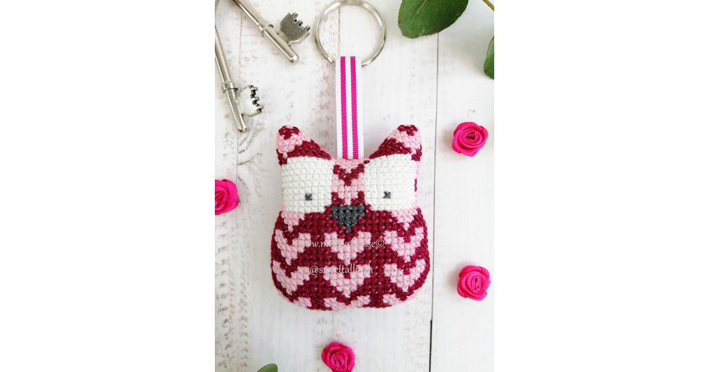 Handmade Crossstitch keychain owl heart Homedecor