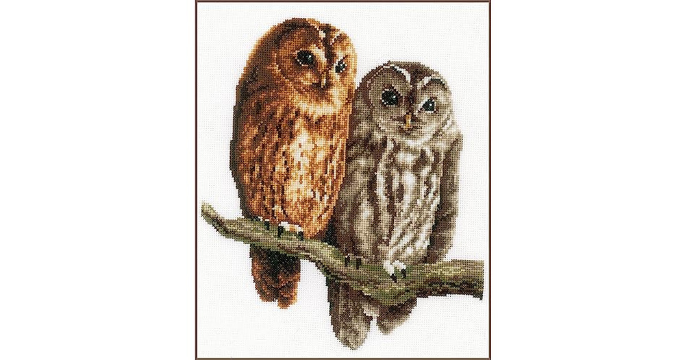 Vervaco Counted Stitch Kit Owls, White, Approx. 26 x 29 cm